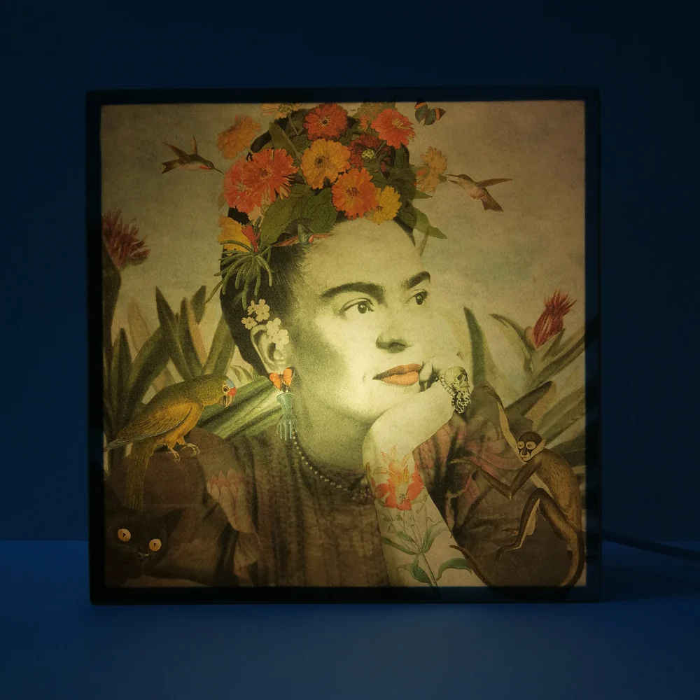La pantalla de la lámpara es de papel y la estructura de la caja está realizada en madera. La tapa posterior es de cartón rígido blanco y tiene una apertura por la que acceder fácilmente a la bombilla.