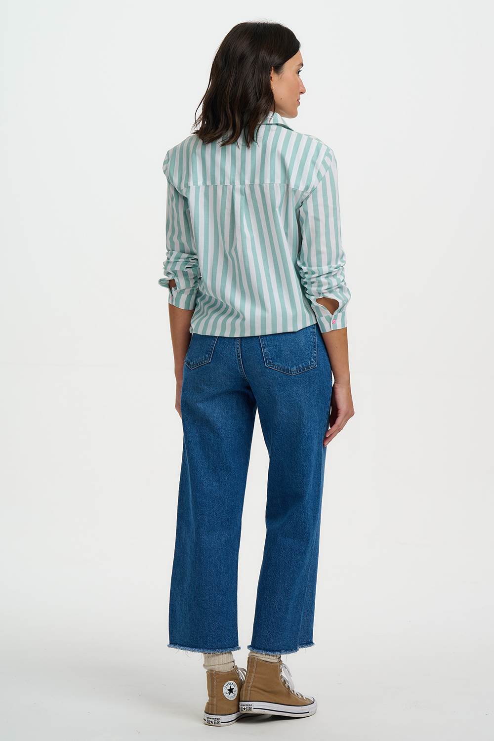 Presenta cuello clásico, cierre frontal abotonado y bolsillo en el pecho. Se completa con frescas rayas verticales y botones en contraste en color rosa que aportan un sutil toque de color. Fácil de combinar, puedes llevarla por dentro con unos jeans o suelta para un look más relajado.
